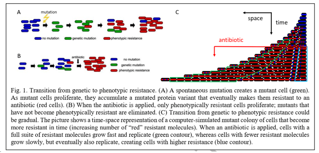I am delighted to say that our Dioscuri Centre has been awarded an NCN grant (call OPUS22) to study the transition from genetic to phenotypic antibiotic resistance in bacterial mutants. The image below conveys the main idea.